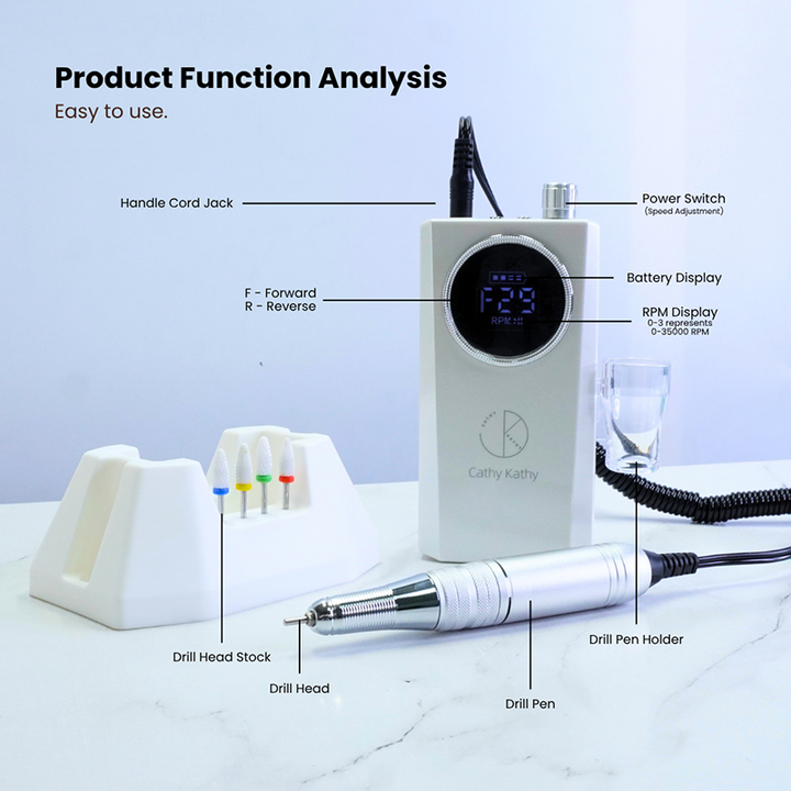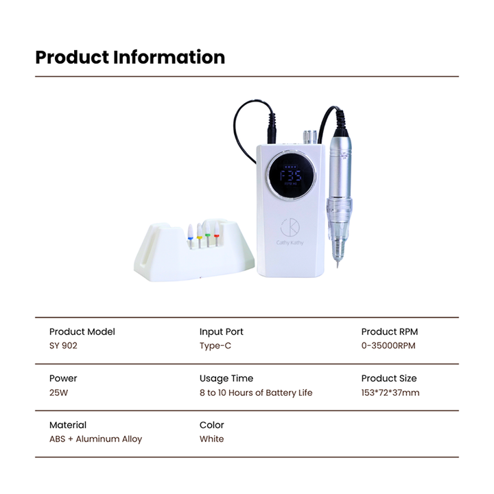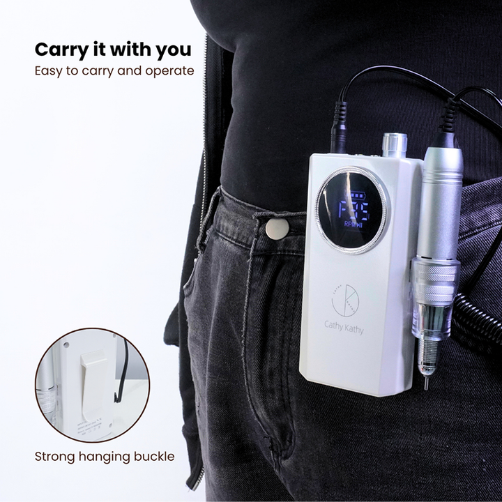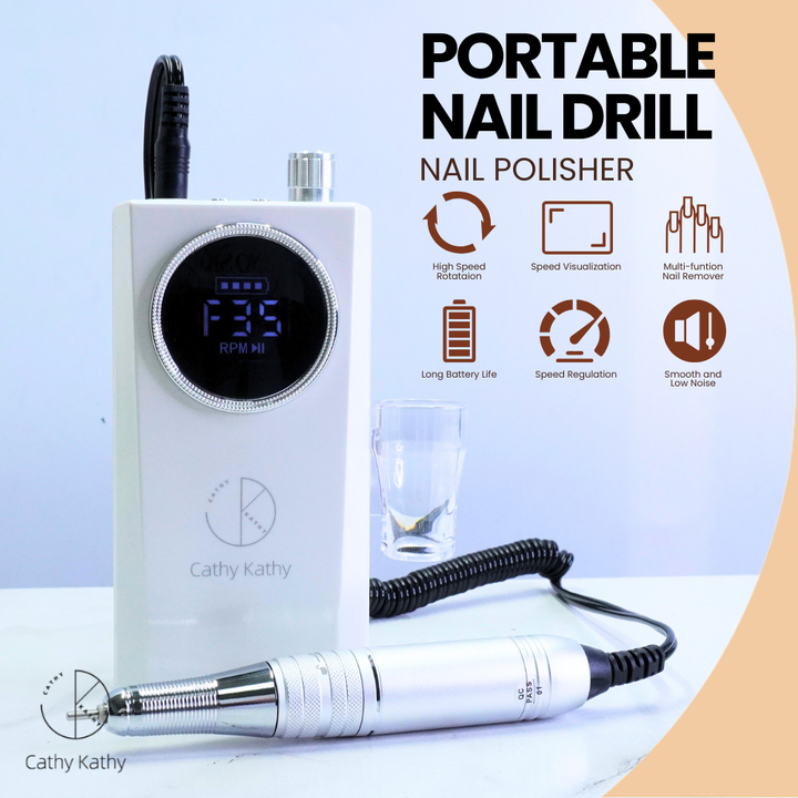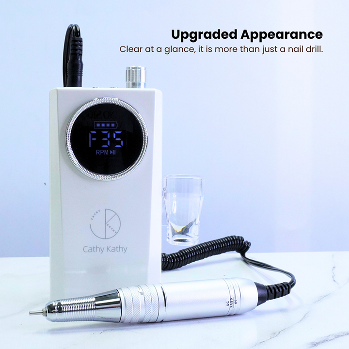 Cathy Kathy Professional Portable Nail Drill 35,000 RPM Cordless Reverse-Forward with Pause Button No-noise & No-vibration Nail Driller Set