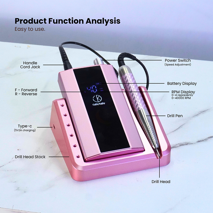 Cathy Kathy Professional 40,000RPM Two-Way Rechargeable Electric Nail Drill Machine with 6000mAh & Charging Dock